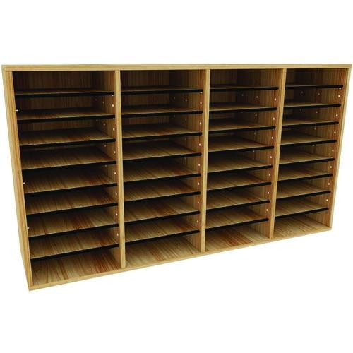 Wood Adjustable 36 Compartment Literature Organizer, 36 Sections, Letter Size, 39.3 x 11.8 x 23.9, Medium Oak