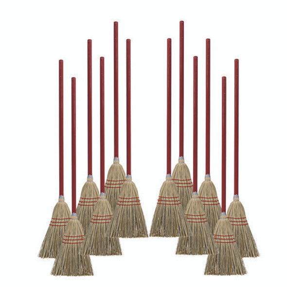 Corn/Fiber Brooms, Corn/Synthetic Fiber Bristles, 36" Overall Length, Gray/Natural, 12/Carton