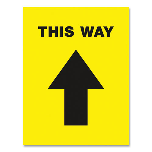 Social Distancing Floor Decals, 8.5 x 11, This Way, Yellow Face, Black Graphics, 5/Pack