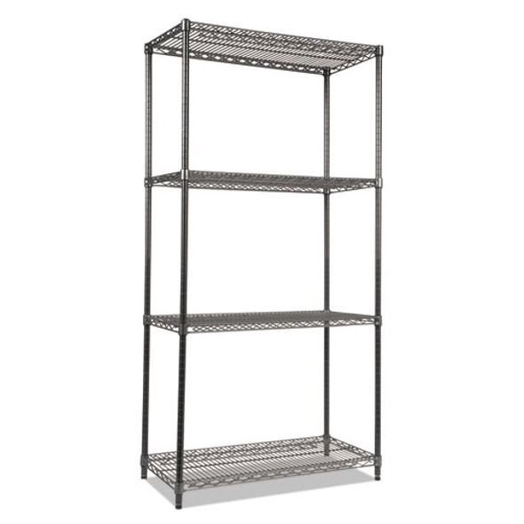 Wire Shelving Starter Kit, Four-Shelf, 36w x 18d x 72h, Black Anthracite