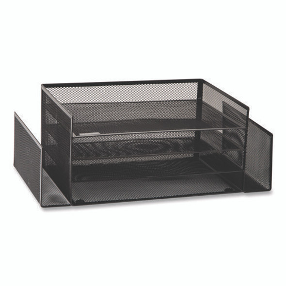 Metal Mesh Desktop Organizer Letter Tray, 6 Sections, Letter Size, 9.15 x 16.75 x 6, Black