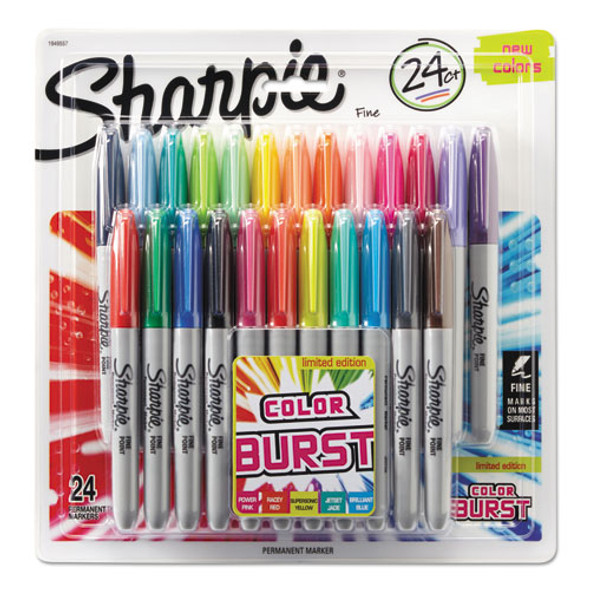 Fine Tip Permanent Marker, Fine Bullet Tip, Assorted Classic and Limited Edition Color Burst Colors, 24/Pack