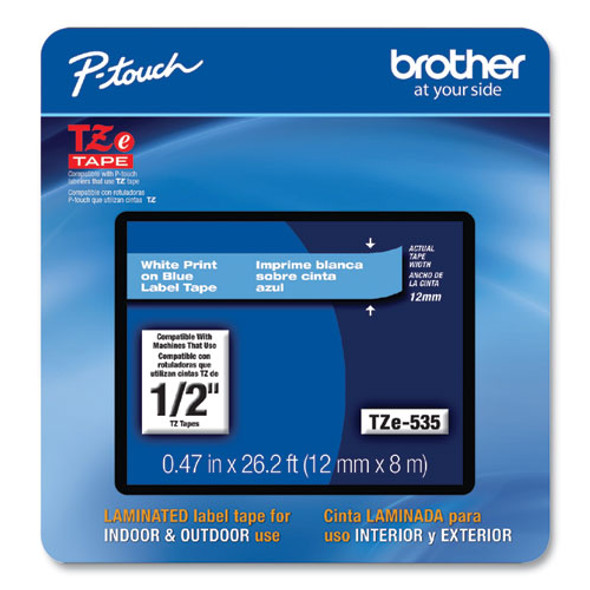 TZe Laminated Removable Label Tapes, 0.47" x 26.2 ft, White on Blue