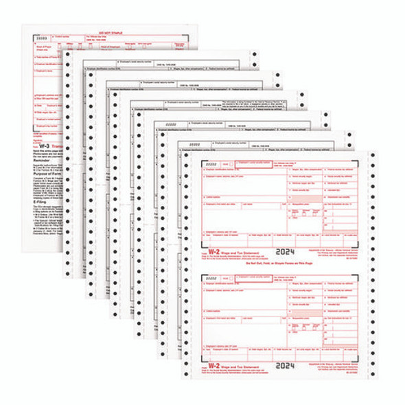 4-Part W-2 Continuous Feed Tax Forms, Fiscal Year: 2024, Four-Part Carbonless, 5.5 x 8.5, 2 Forms/Sheet, 24 Forms Total