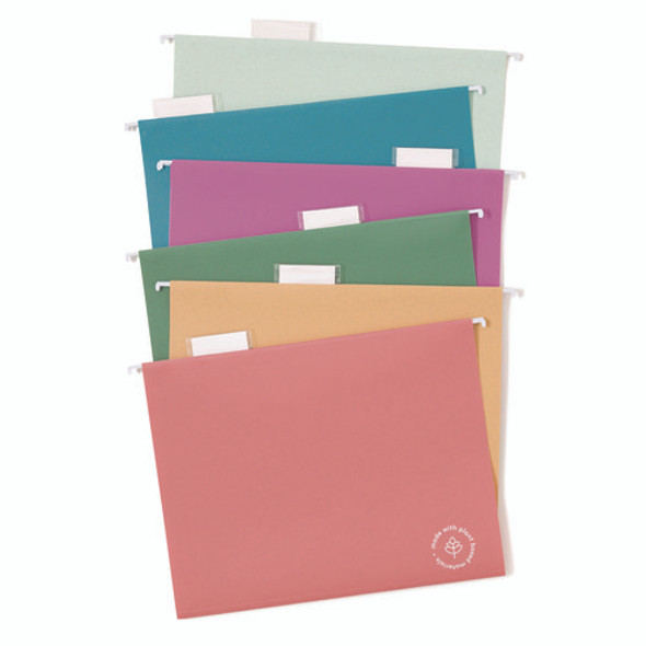 U-Eco Hanging File Folders, Letter Size, 1/5-Cut Tabs, Assorted, 12/Pack