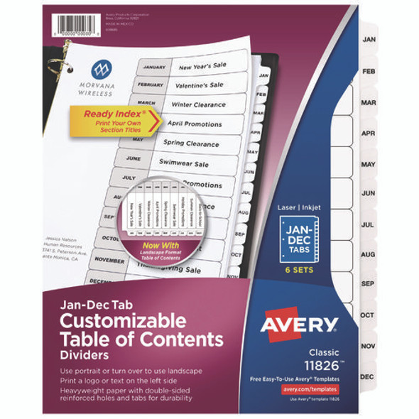 Customizable Table of Contents Ready Index Black and White Dividers, 12-Tab, Jan. to Dec., 11 x 8.5, White, 6 Sets