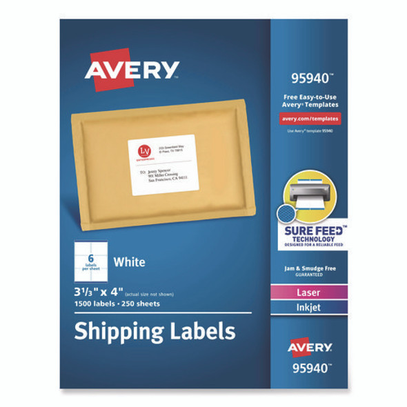 White Shipping Labels-Bulk Packs, Inkjet/Laser Printers, 3.33 x 4, White, 6/Sheet, 250 Sheets/Box